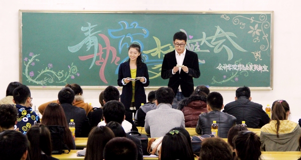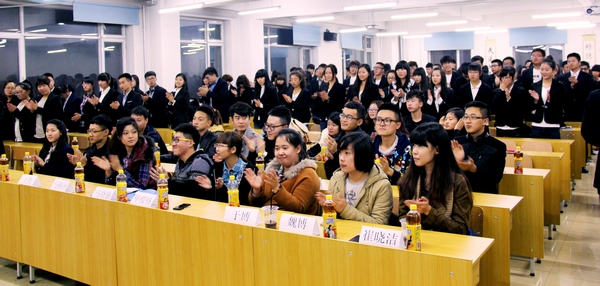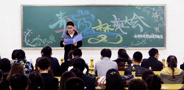 大会第一项,学生会主席马骁驰讲话。虽然陈书记未能亲临现场,但她还是心系同学,委托马骁驰主席向我们转达了她对青协蓝梦的祝福和期望。马骁驰主席也以一名学长的身份向同学们提出了一些建议与要求。他希望新一届青协蓝梦的干事们时刻注意会计人的形象,对自己高标准、严要求,在工作中争先创优,在学习上勤奋努力。