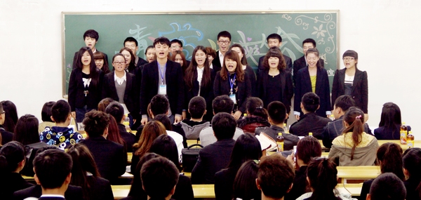 与梦同行我们从不放弃追去,与梦携手我们从不停止前进。 2013年10月22日下午4点30分,会计学院第十四届青协蓝梦成立大会在1413正式拉开帷幕。出席本次大会的有会计学院学生会主席马骁驰,行政中心主任王宇航,管理中心主任王奥、马榕泽,传媒中心主任于博、魏博,文艺中心主任崔晓洁、毕樱格,以及会计学院学生会各部门部长。