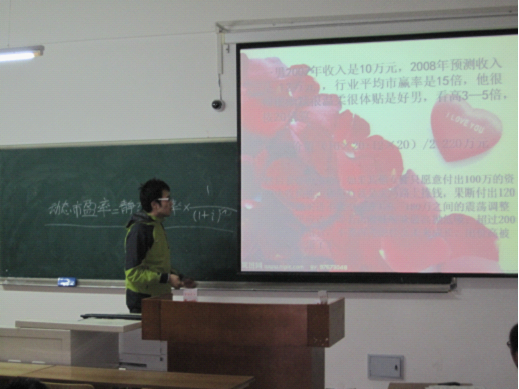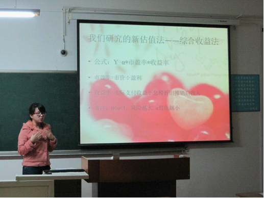 本次论坛的主题是恋爱会计体,论坛以相声表演形式展开,生动活泼地讨论了会计与恋爱的关系,从男生视角讲述了恋爱会计体。接着四位性格迥异的会计女讨论了各自白马王子的标准(潜力股、极品蓝筹股、IPO男和一穷二白男)。进而,小组成员通过研讨会的形式阐述了两种观点:男生组认为女生选老公应该基于价值+成长估值法,女生组认为女生选老公应该基于资产收益估值法。其中,还透过案例带给同学们思考。此外,小组成员对选老公的方式上得出独到见解:综合收益法(Y=α�市盈率�收益率)。整场论坛形式活泼轻快,小组成员出色的表现赢得大家阵阵掌声,会场气氛热烈。