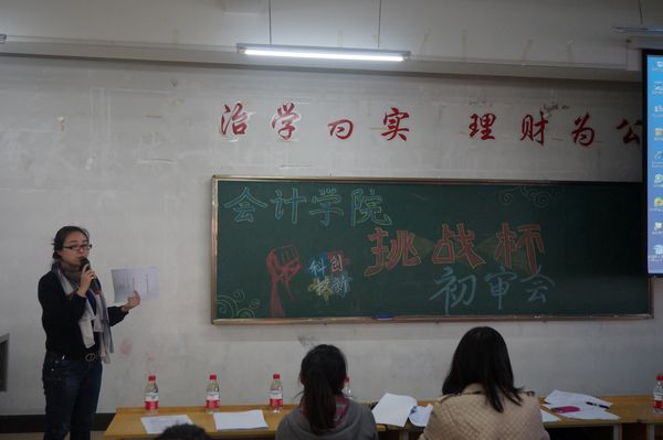 为培养我院同学“创新,创业”意识,“坚持不懈,勇于创新”精神,同时响应校团委号召。我院科技创新活动站于2013年10月30日下午1点在1413教室召开会计学院“挑战杯”创业计划大竞赛初审会。担任本次初审会的评委有会计学院党总支书记陈慧华教授,副院长张劲松教授,党总支副书记刘天副教授,2012级辅导员王博老师,2011级辅导院白露老师,刘洋老师,卜穆峰老师以及在创业方面具有成功经验的08级毕业生赵春武。同时,我们非常荣幸的邀请到了哈尔滨商业大学校团委刘禹辰老师作为本次初审会的评审老师。