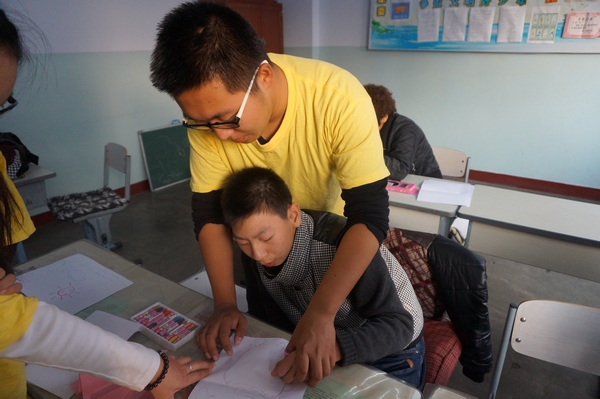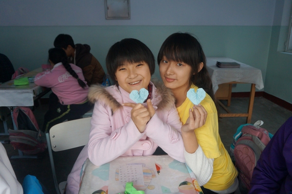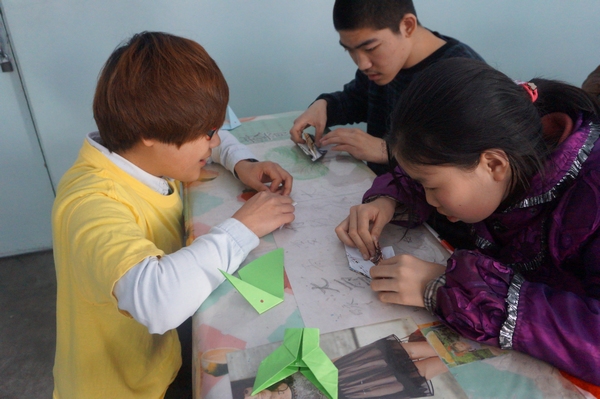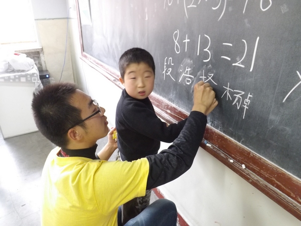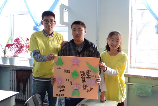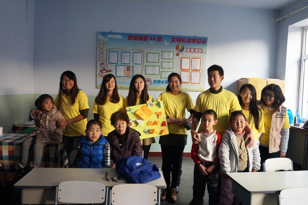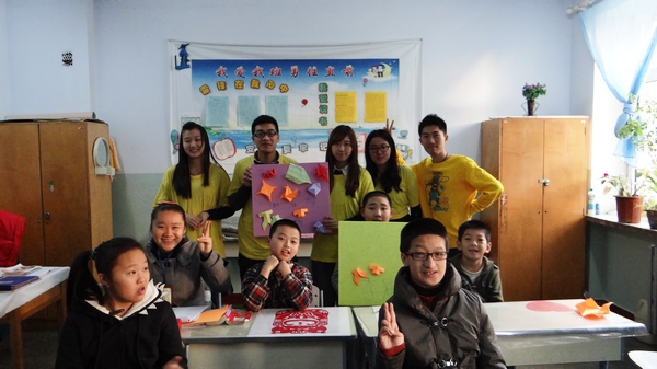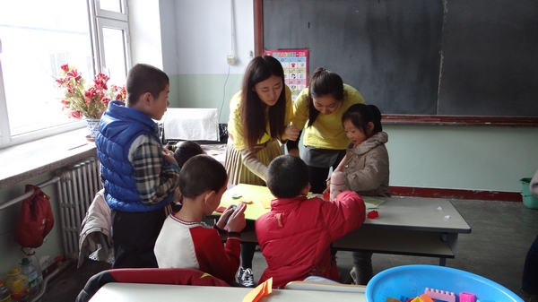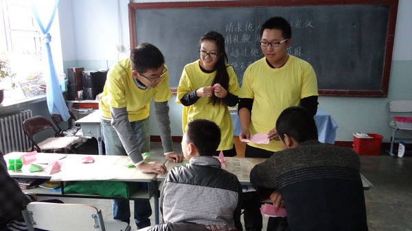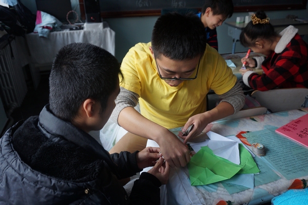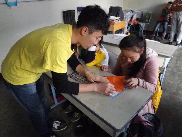 在育新小学里,志愿者们分成几组到各个班级与孩子们进行交流互动,用真诚的笑容与孩子们沟通。教孩子们折纸、简笔画,把成品粘在爱心小展板上送给他们。随后又做了许多有趣的小游戏,与孩子们共同表演节目。在演唱儿歌时,孩子们欢快的打着节拍,露出了幸福的笑容。最后,志愿者为孩子们分发蜡笔、水果和糖果作为小礼物并合影留念。志愿者和孩子们共同度过了一个充满童真快乐的下午,让孩子们感受到身边充满关爱与呵护。