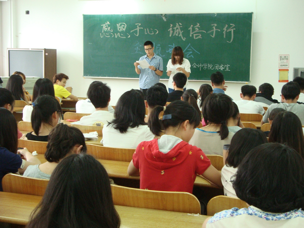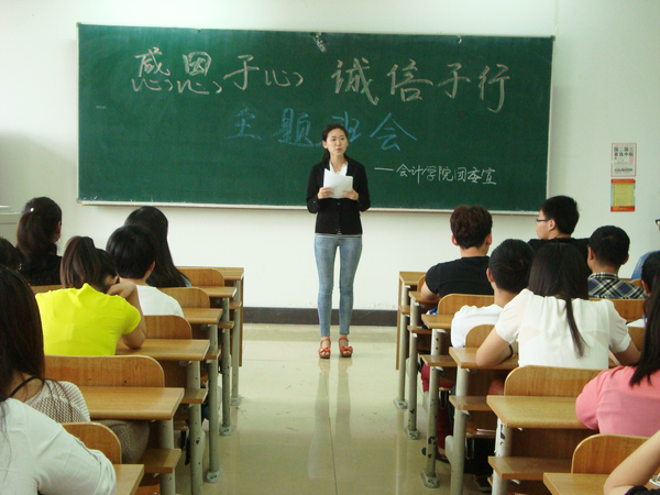为了让同学们更加深刻地认识诚信和感恩的意义和重要,更深地体会感恩与诚信的内涵。会计学院学生团委策划部在1411教室组织了《感恩在于心,诚信在于行》主题班会。2012级会计学1、2班全体同学参加了本次主题班会。