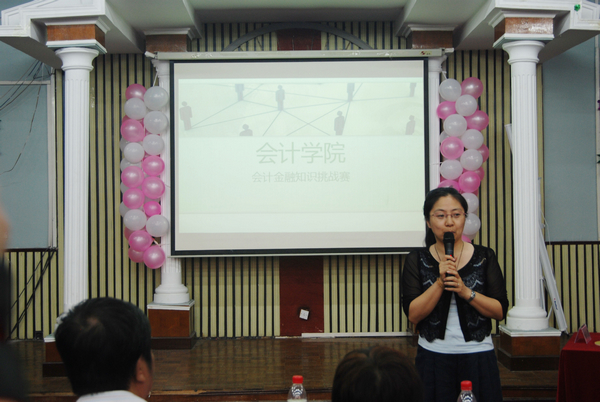 为了培养我院同学对会计金融知识的兴趣,由会计学院团委主办的首届会计金融知识挑战赛决赛于6月14日下午4:30在B区多功能厅拉开帷幕。出席本次大赛的嘉宾有哈尔滨商业大学党委宣传部部长李德学教授、会计学院党总支书记陈慧华教授、副院长张劲松教授、副院长徐鹿教授、党总支副书记刘天副教授、团委书记王博老师、团委副书记郑磊老师、白璐老师。