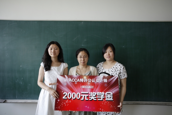 2013年6月27日,哈尔滨商业大学会计学院2009级会计学ACCA专业方向14名同学获得会计学院颁发的ACCA全球考试奖学金。其中,李茹雪同学因ACCA考试全科通过获得5000元奖学金;高聪、蔡媛、李易、马欢、范亭亭、贾雨湉、孙竹晗、崔靓、周小为、於冰洁、王俊、李潇萌和蔡汉孛同学通过F阶段(共计9科)考试获得2000元奖学金。会计学院张林院长、徐鹿副院长、李欢老师、郑磊老师分别为以上同学颁奖,以示祝贺。