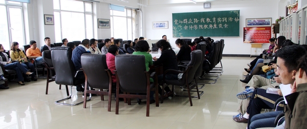 8月29日下午1.30分,会计学院在学院1405会议室召开学习党的群众路线教育实践活动全体教师座谈会。根据学校党委的整体安排,这次活动围绕着习近平总书记一系列的重要讲话精神和学校党委的活动方案,把党员干部的思想和行动统一起来,广泛征求群众意见,听取群众和基层对学校和学院突出问题的反应。