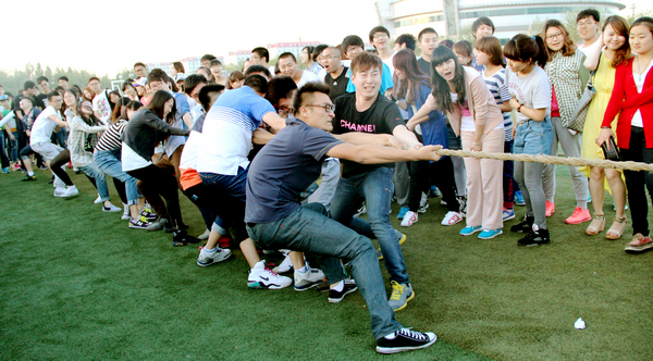 第二天,第一环节的比赛项目是“海底捞月”,主要展现团队配合能力,舍务管理的队伍以配合默契和速度飞快的特点取得的本环节的胜利。第二环节“摸石头过河”,此项目主要考验选手的协调能力,以接力的形式为主,团委的同学身手矫健、动作敏捷,以最快的速度到达了终点,获得了本环节的第一名。第三环节是“盲人敲锣”,这个项目主要考验选手对方向感的判别能力,同学们带上眼罩,凭着感觉前进五米,然后敲击前方的锣鼓。学生工作秘书处的同学以精准的判断和稳定的发挥夺得了本环节的第一名。第四环节是拔河比赛。此次拔河采取淘汰赛制,同学们都表现积极,努力地为自己的团队加油呐喊,全场欢呼雀跃,最后秘书处和团委的队伍获得了拔河的并列第一。