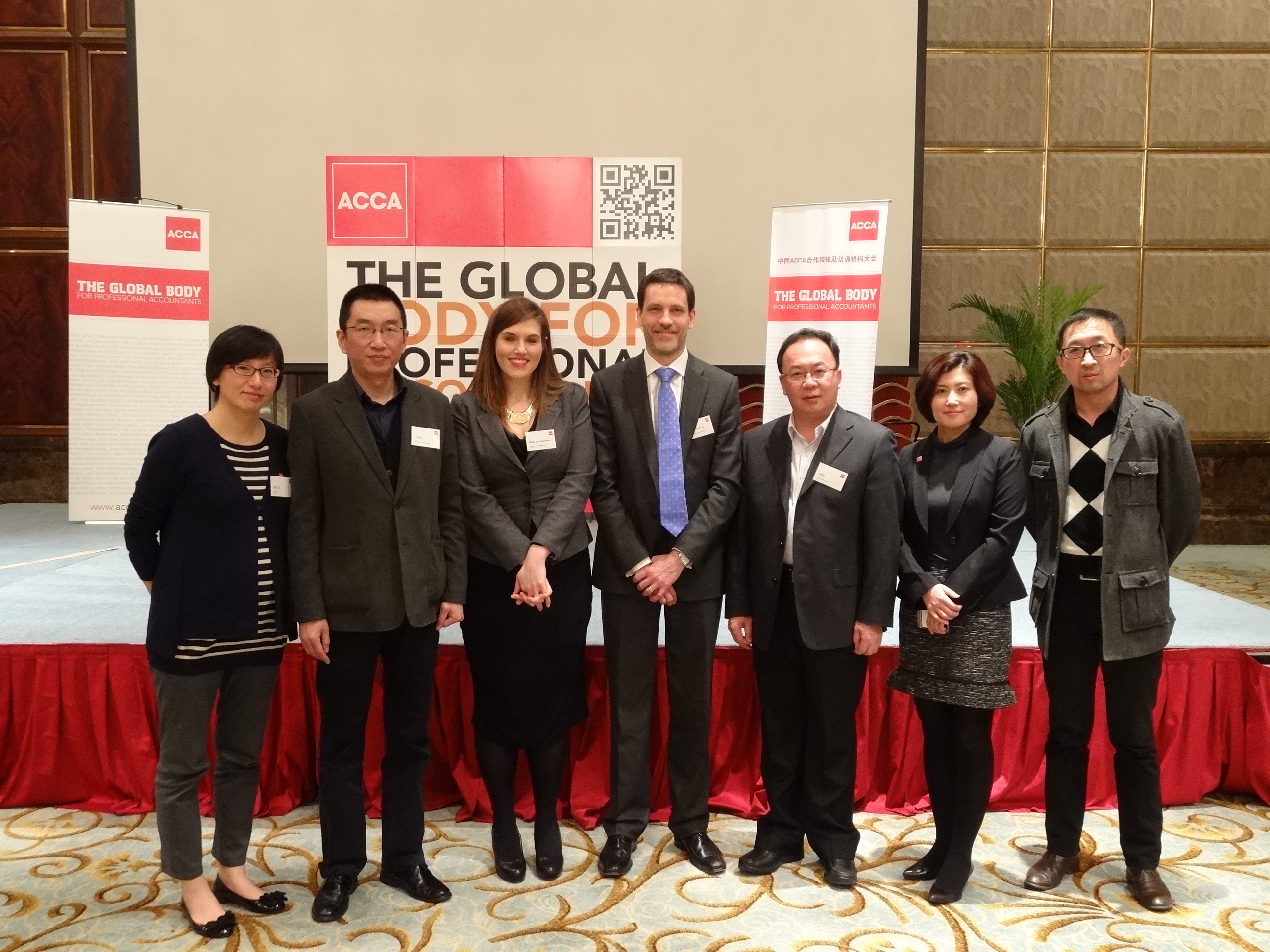 左起依次为:蔡元文(ACCA中国区教育事务主管)、于翔天(ACCA北京办事处首席代表)、Phil Morey(ACCA全球培训机构关系主管)、Nicky Parkes(ACCA全球学习供应商关系经理)、张林、邵楠(ACCA北京办事处高级经理)、李欢