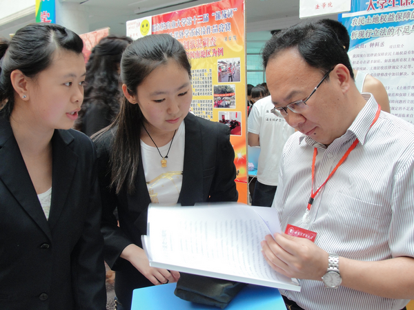 活动开始,各位领导、专家、评审委员会以及指导教师们现场参观指导我院的参赛作品,根据团队作品演示及现场答辩进行现场评审。校党委书记刘德权教授在参观了我院的展台以及参赛作品后,对我院的参赛作品给予了充分肯定,并且鼓励我们继续发扬科技创新精神以及团队合作精神。在本次活动中,我院共有十一个参赛作品入围参与布展决赛,其中“绿色食品产业现状调查报告”和“农作物秸秆纤维缓冲包装衬垫及加工技术”两个作品获得了喜人的成绩,进入了省赛,为我院赢得了荣誉。“农作物秸秆纤维缓冲包装衬垫及加工技术”中“木素交连”这一创新环节得到了专家评委的充分肯定,而“绿色食品产业现状调查报告”在现场答辩环节中也取得了骄人的成绩。其余九个参赛作品也得到了专家评委们的密切关注与充分肯定。