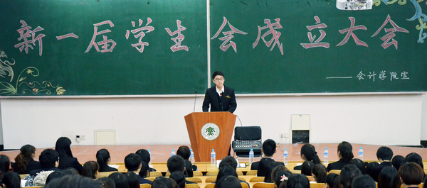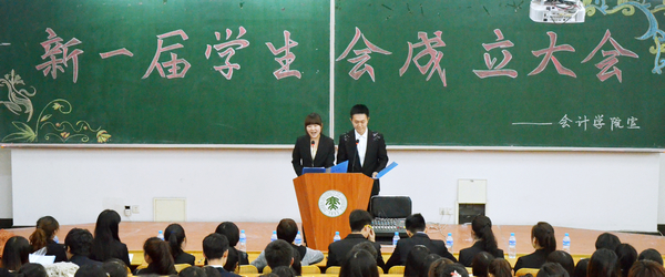 最后,会计学院新一届学生会成立大会在主持人激昂的结束语中圆满结束。