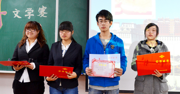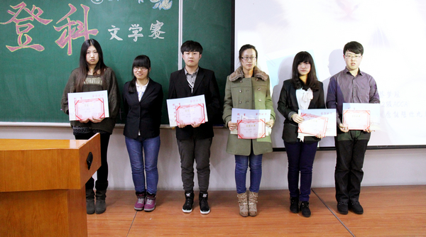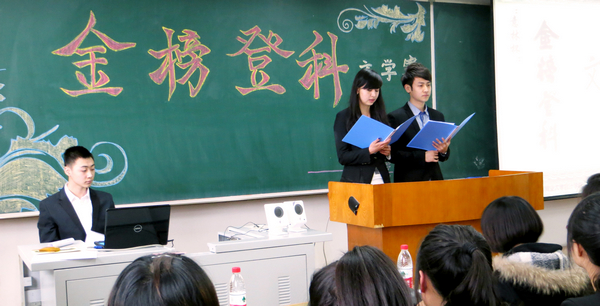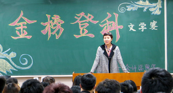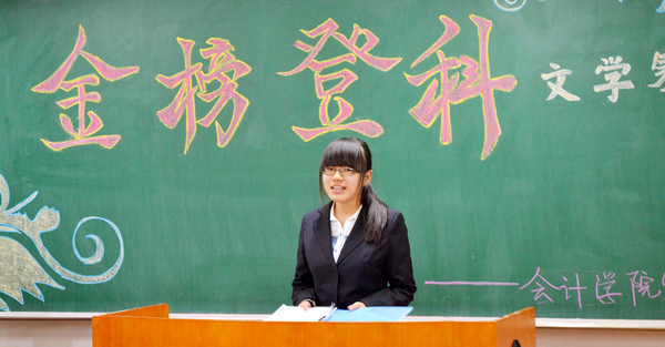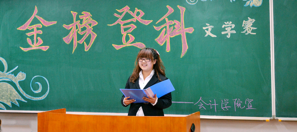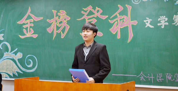 2013年4月11日下午16:30分,会计学院学生会编辑部举办的“意林杯”金榜登科文学赛决赛在A区教学楼0701隆重举行。莅临本次比赛的评委有会计学院党总支书记陈慧华教授;会计学院学生会主席马骁驰;行政中心主任刘雪松;管理中心主任马榕泽;传媒中心主任于博、魏博;文艺中心主任崔晓洁、毕樱格以及传媒中心上任主任李博学长。