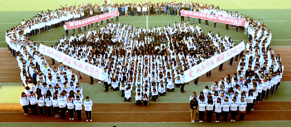 同学们组成“心”形图案,手捧千纸鹤为雅安祈福