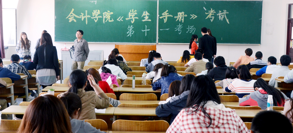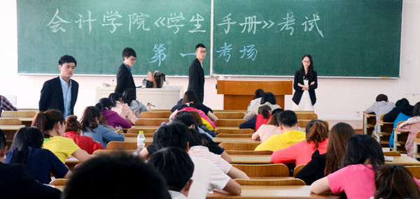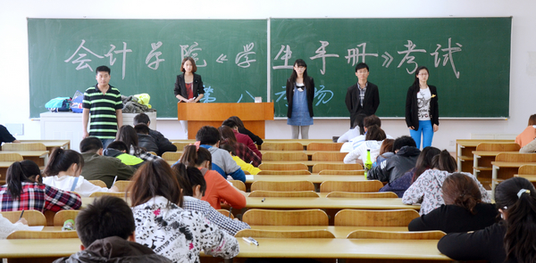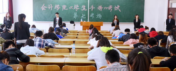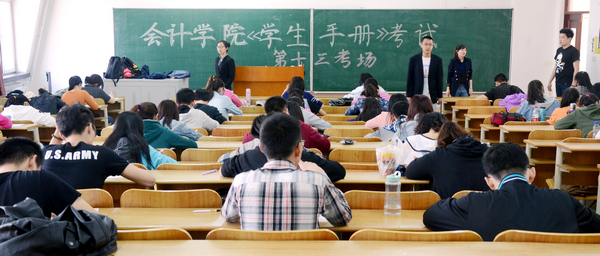 为了严肃校规校纪、建立良好的校风学风、帮助2012级学生进一步了解学校教学、管理等诸多规定、检验新生入学教育学习的成果,会计学院于2013年5月6日晚5点组织12级学生在3号教学楼进行《学生手册》考试。