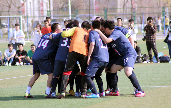 在总决赛中,我院遇到了最强劲的对手——计算机学院。我院在本次足球赛的小组赛中始终成绩优秀,尽管各个队员都或多或少的有伤在身,但疼痛并没有让他们丝毫放弃,身体上的疲惫更不能让他们止步于此,响亮的口号中,他们依旧精神抖擞,斗志昂扬。而领导老师们的鼓舞更是让全场士气达到顶峰,会计必胜!在率先赢得一球的形势下,我院健儿们不骄不躁,稳打稳扎,顽强拼搏,完美地利用精炼的技术,始终将比分拉开。比赛进入尾声,我院队员们经过齐心协力、奋勇拼搏的努力,赢得了场下不断的掌声与呐喊,更是将气氛推向高潮,最终我院以1比0战胜计算机学院,夺得冠军。