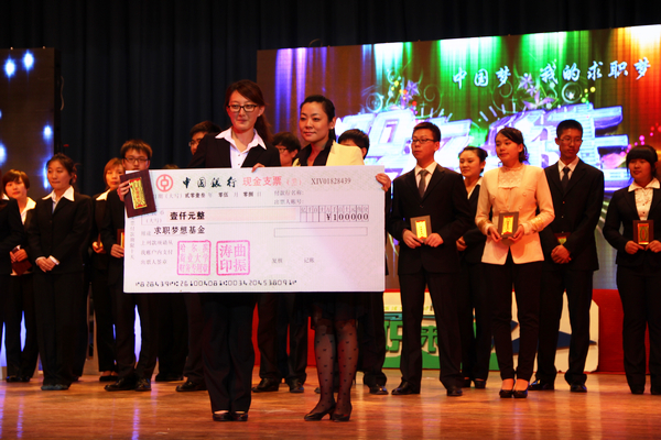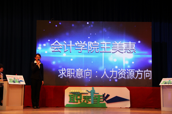 哈尔滨商业大学团委和就业指导中心与校学生会联合举办“中国梦我的求职梦”哈尔滨商业大学首届“职来直往”模拟招聘会于5月8日晚在B区大礼堂圆满谢幕,我院2010级CGA-1班的王美惠同学凭借着突出的表现,成为全场唯一剩得三位评委亮灯的选手,通过权力反转获得了招商银行哈尔滨分行人力资源助理的实习机会及1000元求职梦想基金。