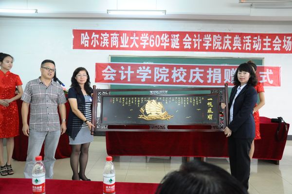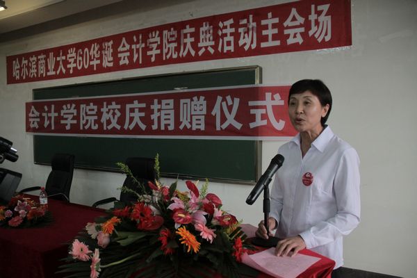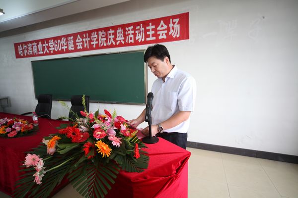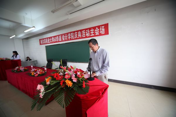 2012年9月8日,哈尔滨商业大学迎来了她60岁的生日。在这喜庆而又隆重的日子里,会计学院主办的“承前启后六十载 锐意进取育英才——会计学院迎哈商大60华诞庆典活动”在1410教室盛大开幕。与会嘉宾众多,包括会计学院老院长唐现杰教授、党总支书记陈慧华教授、院长张林教授、副院长张劲松教授、党总支副书记赵世杰副教授、社会各界嘉宾校友、黑龙江省各高校教师代表以及哈药集团财务总监刘波先生、黑龙江鑫正投资担保集团总经理郎树峰先生等众多知名企业代表。整场庆典活动由会计学院党总支副书记赵世杰副教授主持。