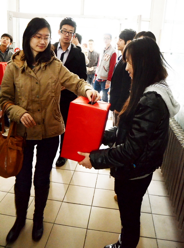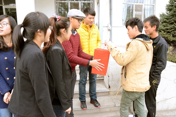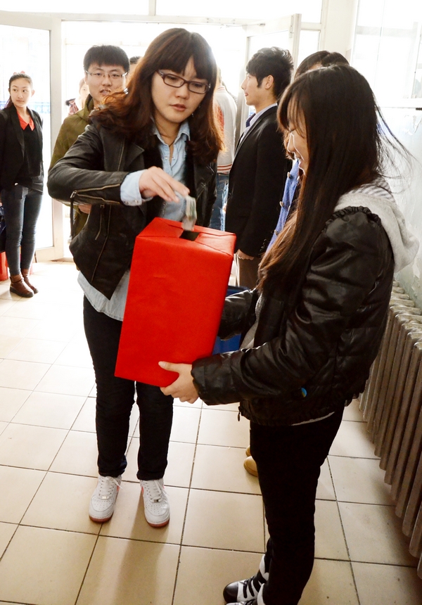 2012年10月24日中午,哈尔滨商业大学会计学院迎来了本年度的师生爱心捐款活动,为弱者送出一份关怀,献上一片爱心。中午12时,爱心捐款活动如时进行,虽然寒风阵阵,但老师和同学们爱心捐款的热情仍十分高涨。