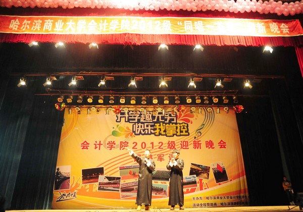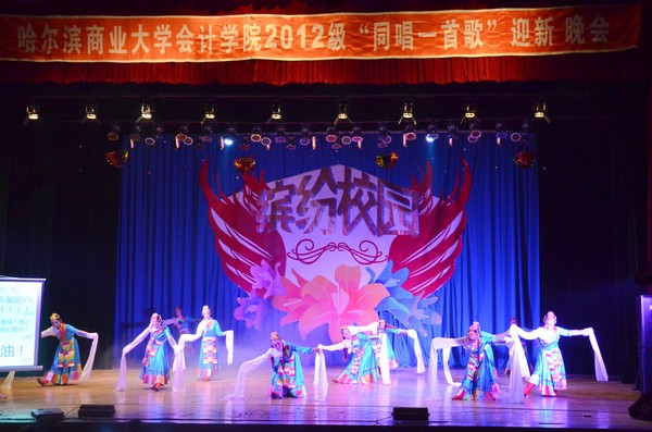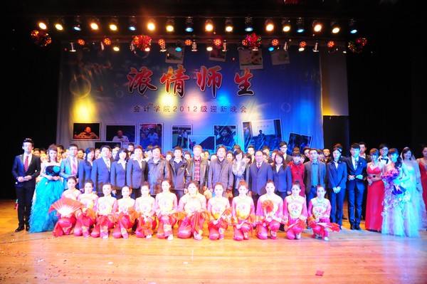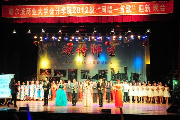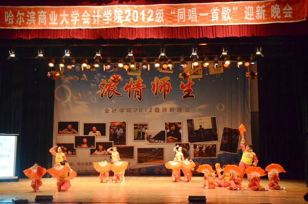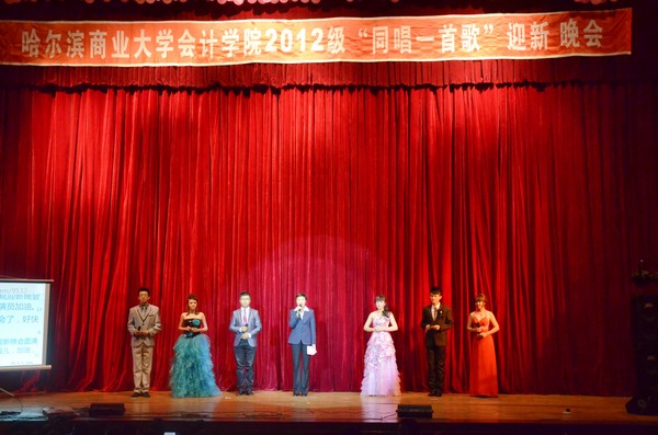 为迎接党的十八大的胜利召开,为欢迎2012级新生的到来。2012年11月1日下午四点三十分,会计学院“同唱一首歌”暨2012级迎新晚会在B区大礼堂隆重举行。