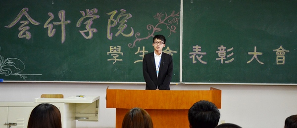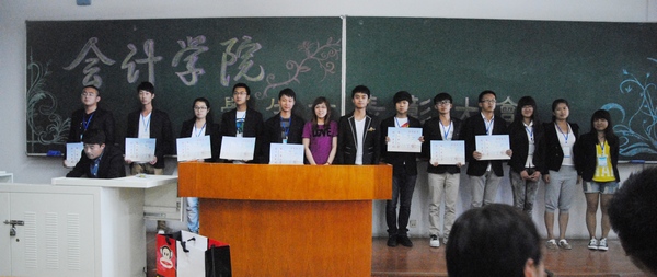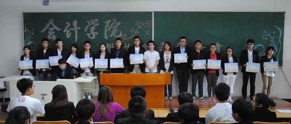 会计学院学生会本学期的工作即将结束,为推动我院学生会工作更好更强更长久的发展,确保下一学期校庆、迎新等各项大型活动的顺利完成,同时对2012上半年度在学生会工作中表现突出的部门以及优秀干事给予表彰。我院于2012年6月11日下午5:00在A区4206教室举行了会计学院学生会总结表彰大会。出席本次表彰大会的有会计学院党总支书记陈慧华教授、会计学院学生会主席团全体成员,会议由会计学院学生会执行主席王瀚雄、常务主席肖玥主持。