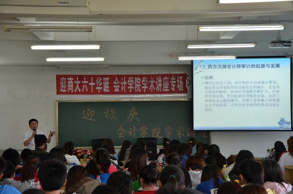 喜迎商大60华诞,9月6日下午15点10分哈尔滨商业大学会计学院举办的系列专题讲座,迎来了哈尔滨天泽会计师事务所所长张兴波。该讲座的举办地点为1410教室,杨忠海教授为此次讲座担任主持人。张所长向同学们讲述了关于中国注册会计师的前世今生。