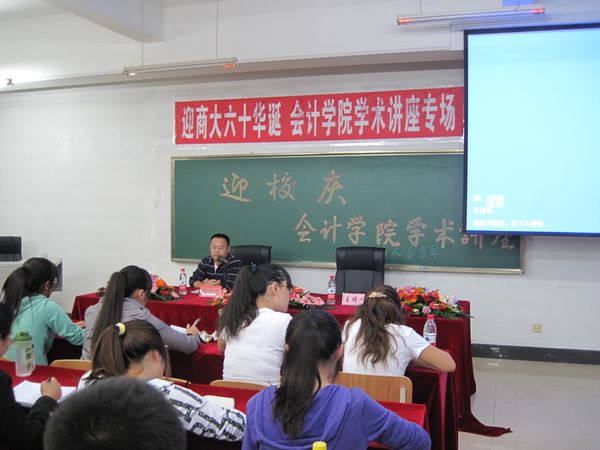 喜迎商大60华诞,会计学院举办了系列专题讲座,于9月6日晚上18点整在1410教室邀请了注册会计师、高级会计师、工程造价师、正达会计师事务所董事长秦雪军。梁运吉教授为此次讲座担任了主持人。秦董事长为同学们做了关于注册会计师行业发展的专题讲座。