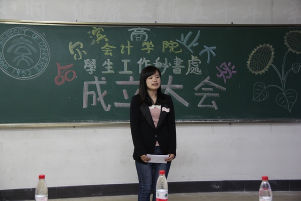 年年岁岁花相似,岁岁年年人不同,只有蜕变才能茁壮,只有新生才能永久。随着春天的万物复苏,会计学院学生工作秘书处也注入了新的血脉;新的气息、新的征程、新的起点,新一届的成立大会于2012年4月16日16时30分准时在1410教室隆重举行。本次会议由宣企部副部长王晨主持。出席本次会议的有:会计学院党总支书记陈慧华教授,09级辅导员郑磊老师,秘书处主任王亚松及全体学生工作秘书处成员。