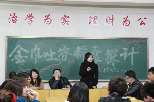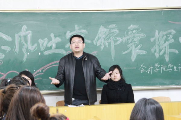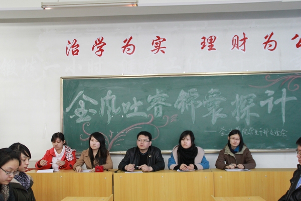 2012年4月5日17:00,会计学院学生团委以“金风吐睿,锦囊探计”为主题在1410教室举办了学生干部学习工作经验交流会。