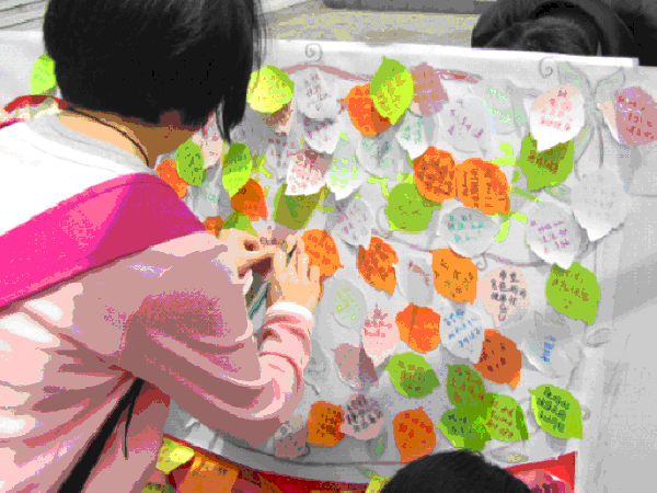 活动期间大家踊跃参与,炎热的天气也无法阻挡同学们的热情,现场气氛高涨,微风吹来,五彩缤纷的心愿贴仿佛随风飞翔。时至下午13点30分,心愿墙活动收集心愿阶段圆满结束。经过整理,心愿墙于5月11、12日在教学4号楼一楼展出。
