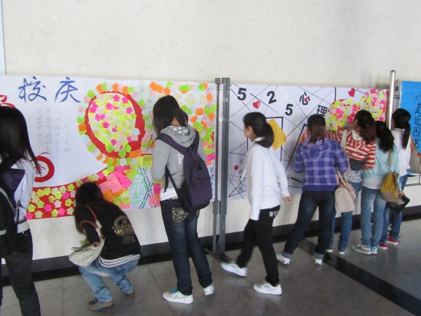 心愿墙设计了四个板块,分别是 “5·25”心理健康你我他,我为校庆献祝福,我为母亲送祝愿以及自我励志宣言,用写下心愿的形式响应“5·25”心理健康系列活动,同时向即将来临的母校60华诞送上学子的祝福,也为母亲节的到来献上真情的祝愿,并提醒自己梦想还在,需要努力实现。