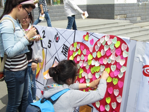 2012年5月10日上午9点50分,由会计学院学生资助管理办公室全体成员组织策划的以“写下心愿,让希望飞翔”为主题的心愿墙活动在A区食堂门口隆重举办。此次活动面向全校学生开展,得到了积极的响应。