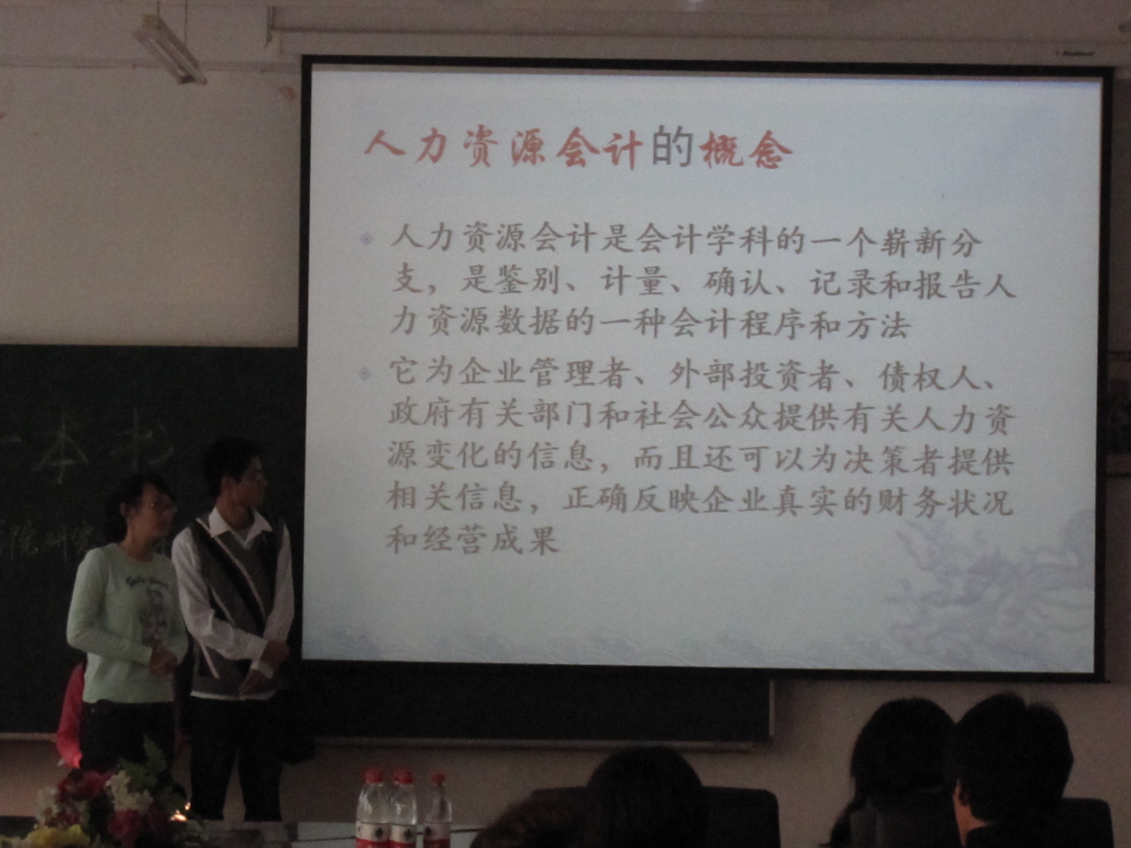 本期研究生学术创新论坛的主题是非同凡“想”——创新型高新技术企业的会计创新,活动一开始由小组主持人李作家同学开场并以苹果公司的财务状况为切入点,由此引出了本期主题。随后小组成员以“访谈节目”、“招聘会”等多样化的表现形式分别讲解了苹果公司作为一个创新型高新技术企业的特征及其对财务工作的新要求和对人才的需求,另外小组成员对人力资源会计进行了深入的研究探讨。与此同时,小组成员在经过讨论之后提出了自己的观点。