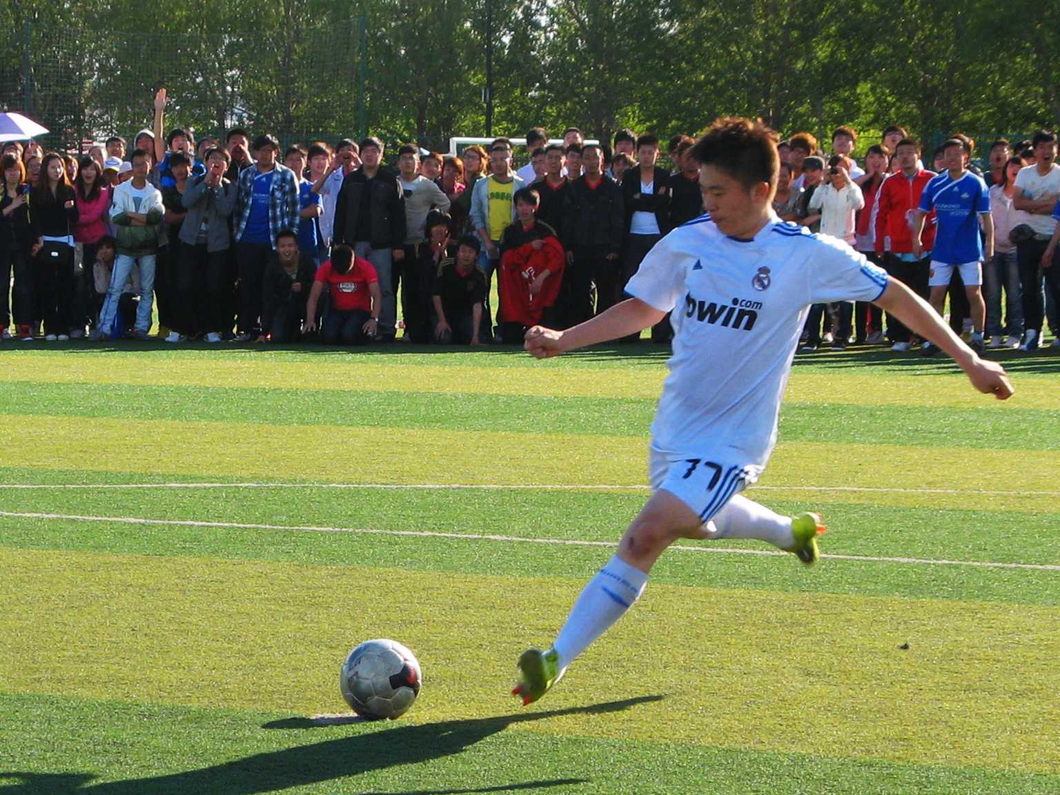 伴随着主裁判的一声哨响,比赛激情上演。双方队员迅速进入状态,身着蓝色球衣的经济学院率先发起猛攻,一时间我方球门受到多次威胁。上半场开场的第十分钟,对方前锋抓住我院后卫的一个失误率先打进一球,使得会计学院陷入十分被动的形势。然而,落后一球并没有打消他们的斗志,反而激起了会计学院战无不胜的雄心!球员们不断加强配合和防守,利用控球加快比赛节奏,使经济学院的一次次进攻都无功而返,博得观众的阵阵欢呼。比赛进行半小时后,身着白色球衣的会计学院足球队渐渐掌握场上的主动权,8号球员王凌霄依靠着队友的精妙配合,越过对方稳健的防守,面对球门奋力射击,进球得分!比分变成为1:1。中场休息时,球员们就下半场战术进行部署,会计学院的拉拉队员们也用山呼海啸的助威声给予了他们对心爱球队最大的鼓励。下半场比赛刚刚开始,会计学院队便遭到近乎致命的打击。进攻核心14号球员因犯规被主裁判红牌罚出场外,这预示着在接下来的比赛中,会计学院队只能以十人应战对方的十一人!十年未曾捧起冠军奖杯的会计学院,难道又将重蹈覆辙?我院健儿用实际行动对所有人吼出了“誓争冠军”的心声。十个人的会计学院足球队用拼命地奔跑和默契的配合完美控制了场上局面,甚至出现了压住对方半场狂攻的惊人局面!无奈对方门将的出色表现,让我院数次有威胁进攻都无功而返。随着裁判的一声哨响,比赛在平局的情况下进入点球大战。点球,可以说是会计学院队的“10码之殇”。数不清多少次,我们披荆斩棘杀入决赛,最终却倒在了这短短的9.13米处,历史又将重演吗?场面的气氛紧张到凝固,加油声、呐喊声气势震天!会计学院的队员顶住压力,用五罚中四的强势表现无可争议的横扫强敌,在万众瞩目中捧起了久违的冠军桂冠!