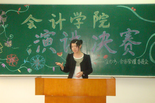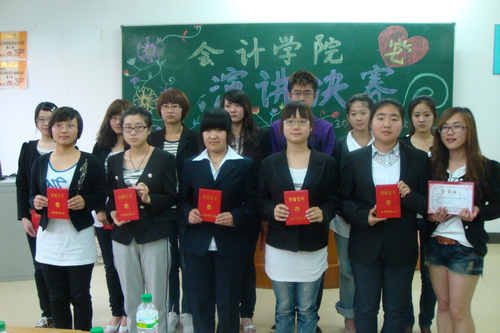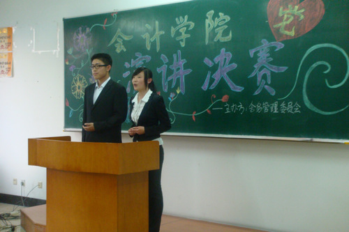 为纪念中国共产党成立90周年, 2011年5月26日 下午17:00,会计学院舍务管理委员会在A区1307教室隆重举办了以“党在我心中”为主题的演讲大赛。会计学院党总支书记陈慧华教授,党总支副书记赵世杰副教授,辅导员王博、郑磊老师,以及舍务管理委员会主任刘沛哲,学生会主席唐汉夫、张南良出席并参加了此次活动。