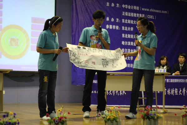 “中华会计网校杯”第二届校园财会实务大赛从筹办之初截止至2010年4月,共有超过三百所高校,十万学子参加了大赛。其中东北地区经过激烈的角逐,共有六支代表队闯入区域决赛。