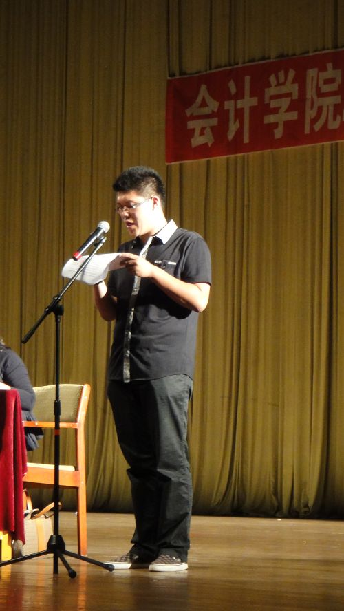 大会最后,会计学院党总支副书记、2010级辅导员赵世杰老师向2010级学生介绍了学院近期的工作安排,并再次对安全、军训注意事项等问题提出了具体的要求。赵老师希望大一的新生们能够尽快适应大学生活,用心学习做人和做事,尽早成为一名诚信守纪、德才兼备的会计学院学子,让自己的青春无怨无悔。