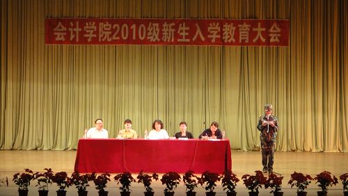 9月6日下午2点,会计学院师生齐聚东区大礼堂,召开2010级新生入学教育大会。参加本次会议的领导和老师有:会计学院院长唐现杰教授,党总支书记陈慧华教授,副院长张劲松教授,副院长张林教授,党总支副书记、2010级辅导员赵世杰老师。本次大会由赵世杰老师主持。