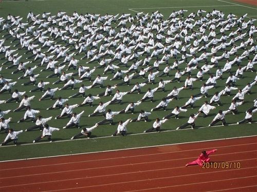 2010年9月10日,在哈尔滨商业大学第16届田径运动会上,会计学院的同学们展现了一场声势浩大的千人太极盛宴,将4个月以来不懈努力的成果展现出来。以此为校运会增光添彩,为教师节奉献厚礼。在这4个月的排练中,有的同学生病了、受伤了,他们都依然坚持训练,他们用实际行动展示了会计学院的优良传统,坚定了同学们传承中国文化的信念。此次活动是在体育学院陈德友院长的倡导下,会计学院陈慧华书记的有利组织及五位军体部老师耐心指导下取得的。