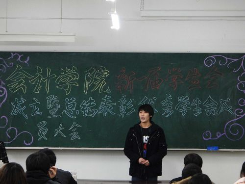2010年12月16日下午4点30分,会计学院新一届学生会成立大会暨总结表彰优秀学生会成员大会在A区1408教室隆重举行。会计学院党总支书记陈慧华教授出席了本次大会。