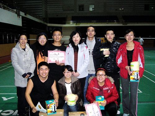 首先进行的是男、女单打比赛,09级代表队势如破竹,激情四射。08级代表队技术超群,魅力不凡。经过激烈的打拼,最终09级代表队略胜一筹,包揽了男子单打全部奖项,并争得女子单打冠军,同时也掀起比赛的第一次高潮。在随后进行的男、女双打及混双比赛中,08级代表队愈挫愈勇,奋起直追,以完美的团队协作及超凡的技艺包揽双打及混打冠军,同时将观众的观战热情及参赛者的比赛热情推至最高点,再一次达到比赛的高潮。整场比赛完全体现了会计学院研究生的风采,赛中互不相让,赛后情谊浓浓。张劲松教授也亲自上场,与同学们切磋球技,在为获奖同学颁发奖状及奖品后与全体到场同学合影留念,留下珍贵一幕。