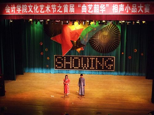 2010年4月25日晚19时,哈尔滨商业大学会计学院首届曲艺大赛晚会在一片欢声笑语中圆满结束,这是由会计学院团委举办的首次大型比赛。本次大赛旨在丰富同学们的课余生活,为有才艺的同学提供一个全面展示自己和互相交流学习的平台。为了晚会的节目能够更加精彩,呈献给观众一台完美的演出,会计学院团委在赛前做了充分的准备工作。从选手报名到三次节目审查,都为比赛顺利进行奠定了坚实的基础。