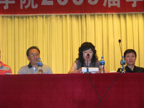 接下来学院党总支书记兼05级辅导员陈慧华教授发表了重要讲话,陈书记充分肯定了09届毕业生在校期间勤奋苦读、勇于创新的精神,感谢同学们多年来对学院工作的支持和为学院争得的荣誉,同时希望他们做拥有智慧并富有激情的人,做胸怀大志并脚踏实地的人,做德才兼备并勇于创新的人,做富有责任并敢挑重担的人!陈书记诲人至深、情真意切的讲话,令全场毕业生们激情澎湃,感动不已,掌声此起彼伏,现场气氛十分热烈。