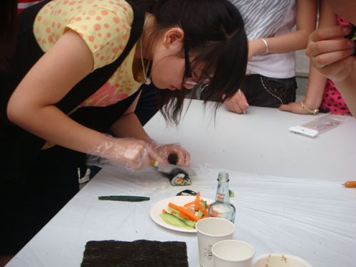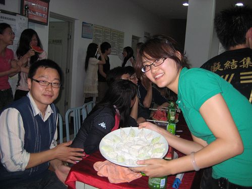 宣读完比赛规则后,一声令下,参赛学生立即分成小组开始了紧张而热烈的包饺子比赛。各小组齐心协力,分工合作:有的负责分饺子皮,有的负责包饺子,有的负责摆放,忙得是不亦乐乎,却乐在其中。而指导老师和评委穿梭其中,或亲手示范,或啧啧称奇。经过十来分钟的比赛,获胜小组脱颖而出,他们包的饺子数量多、质量好、摆放整齐,博得了同学们与评委的一致好评。