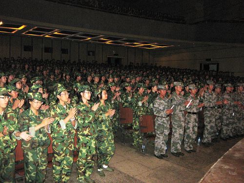 最后,郑磊老师重点对《学生手册》中的学生住宿管理办法和缴费与注册办法等做了讲解,并对09级新生军训情况做了阶段小结,对军训中的部分同学提出了表扬和批评。