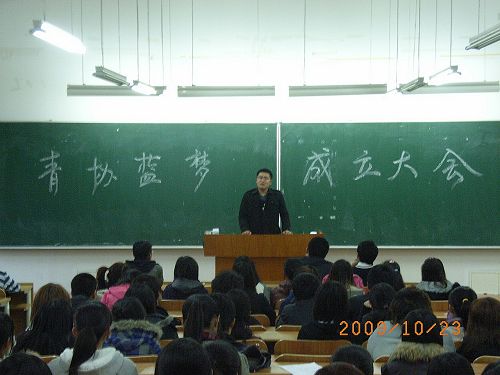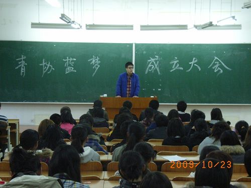 青协蓝梦在会计学院的沃土中和陈书记的领导下茁壮成长,下午4:30,会议正式开始,此次会议由王泽部长主持,在精练的开场和介绍后,学生会主席刘跃作为嘉宾代表,为大家做了精彩的讲话,青协蓝梦各个部门的负责人也纷纷作了精彩的自我介绍,相信新一代青协蓝梦成员在这个组织里不仅能提高自身素质、锻炼自我能力,更会为需要帮助的人奉献爱心,使自己的大学生活过得充实而有意义,正如他们的口号——“为爱携手,风雨无阻,在实践中升华”!