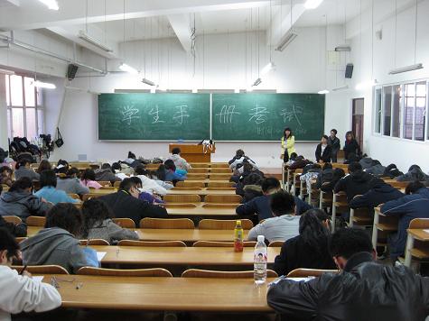 为了严肃校规校纪,建立优良的校风学风,帮助大一新生进一步了解学校教学、管理等诸多规定,检验新生入学教育学习的成果。会计学院于2009年10月29日晚组织全院09级学生在3号教学楼进行《学生手册》考试。