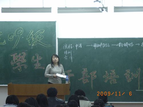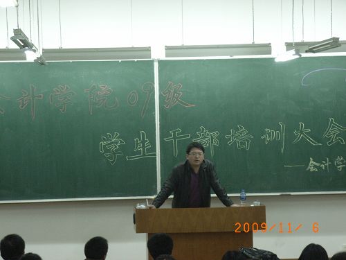 为引导新生尽快融入各种不同的班干角色,了解自身的职责和工作方向,更好的带领全班同学适应大学生活,创建优良的学习氛围和开展丰富多彩的课余活动。加强新生班干间的默契配合,增进团队意识和集体荣誉感。会计学院于2009年11月5日在三号教学楼105和106教室对新生干部进行了培训,会上会计学院党总支书记陈慧华教授,党总支副书记赵世杰老师,辅导员王博、杨贞、郑磊老师分别就班干的工作方法与领导艺术、组织发展程序、如何与老师和同学相处、学习与工作的关系、班干的职责等不同的方面与新生干部进行交流、对新生班干进行指导。