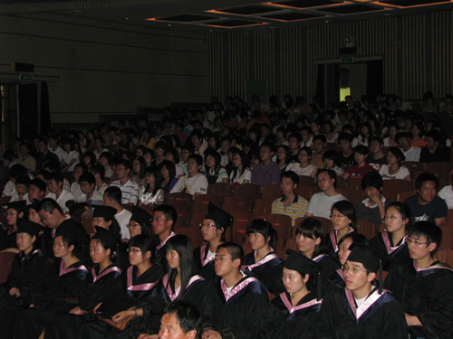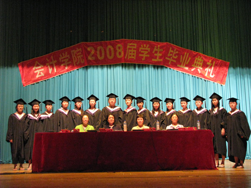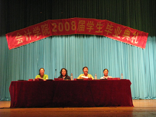 2008年6月24日14:00,会计学院在东区大礼堂隆重举行了2008届学生毕业典礼。参加毕业典礼的有会计学院院领导、辅导员及888名毕业生。会议由会计学院党总支书记陈慧华教授主持。,