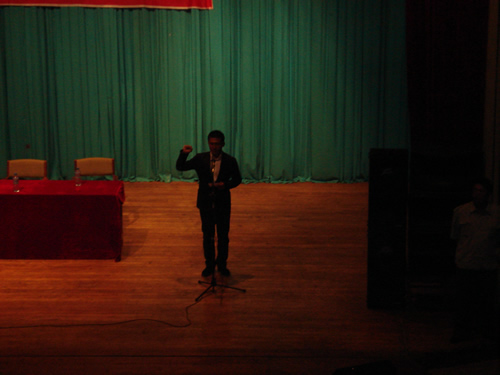 正式开会之前,在院学生会学习部部长刘跃同学的带领下,我院2008级全体同学进行了入学宣誓,“做商大人,我们无怨无悔……我们愿做……”,在庄严的气氛中,用铿锵有力的誓言表明了成为优秀大学生的决心。