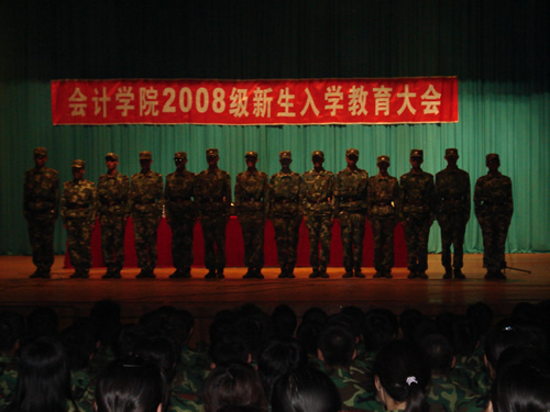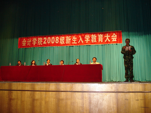 2008年9月9日下午,会计学院在东区大礼堂召开了2008级新生入学教育大会,拉开了新生入学系列教育的序幕。参加此次大会的有会计学院学工办成员、教官以及2008级1023名新生,会议由院党总支副书记赵世杰老师主持。