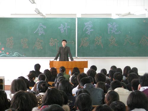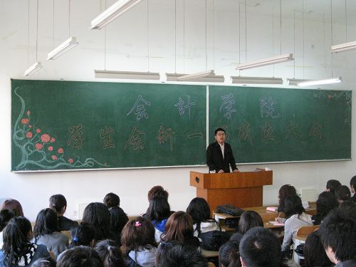 2009年4月13日晚,“会计学院新一届学生会成立大会”在3103召开。会议由学生会主席刘跃主持。党总支书记陈慧华教授出席了本次会议。