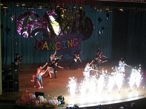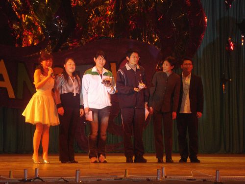 由06.07.08级学生干部和主持人带来的充满青春活力的开场舞点燃了现场氛围。各班精心编排的民舞依次亮相,各具风情,各有特色,赢得了阵阵掌声。互动环节过后,令人最感动而充满温情的一幕将全场的气氛推向高潮——陈书记携全体辅导员为08级两位新同学献上一份惊喜,庆祝他们入校以来的第一个生日,为他们送上了生日贺卡和生日蛋糕,全场掌声如潮,两位同学更是留下了激动的泪水。感动过后,掌声再次响起,动感十足的现代舞元素,给人惊喜不断,现场气氛异常活跃。